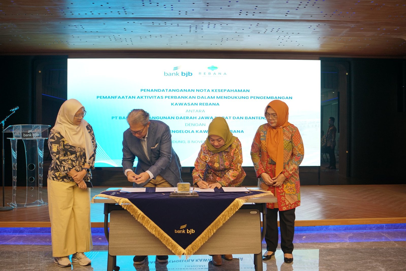 Dalam kesempatan ini, Direktur Komersial dan UMKM bank bjb, Nancy Adistyasari, bersama Kepala Pelaksana BP Rebana, Bernardus Djonoputro, menandatangani MoU secara seremonial di Menara bank bjb, Bandung. Penandatanganan ini mencerminkan komitmen kedua belah pihak untuk bersama-sama mendorong pengembangan ekonomi Kawasan Rebana.