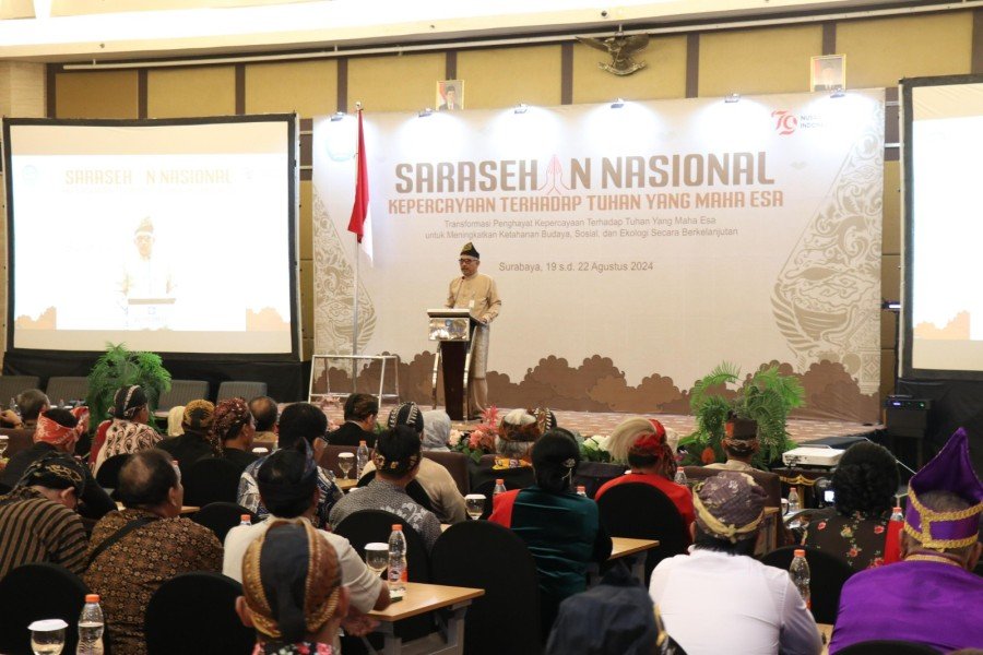 DJABARPOS.COM, Surabaya – Sebagai upaya untuk merajut persatuan dan memperkuat kesetaraan dalam bingkai keberagaman, Direktorat Kepercayaan Terhadap Yang Maha Esa dan Masyarakat Adat (Dit. KMA), di bawah naungan Direktorat Jenderal Kebudayaan, Kementerian Pendidikan, Kebudayaan, Riset, dan Teknologi (Kemendikbudristek), menyelenggarakan Sarasehan Nasional Kepercayaan Terhadap Tuhan Yang Maha Esa pada 19 s.d. 22 Agustus 2024 di Surabaya, Jawa Timur.