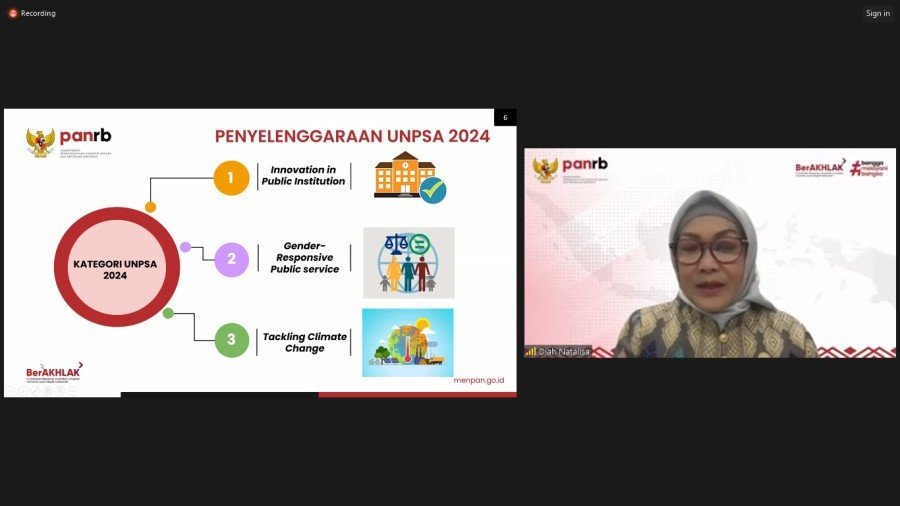 Inovasi yang akan diikutsertakan disesuaikan dengan tiga kategori inovasi UNPSA 2024, yakni Inovasi pada Institusi Publik, Pelayanan Publik Responsif Gender, serta kategori khusus Mengatasi Perubahan Iklim. “Kami telah memilih sebelas inovasi yang akan diikutsertakan dalam UNPSA 2024 dengan memperhatikan kesesuaian kategori dan kriteria yang telah ditentukan,” ujar Deputi Bidang Pelayanan Publik Kementerian Pendayagunaan Aparatur Negara dan Reformasi Birokrasi (PANRB) Diah Natalisa secara virtual, Selasa (22/08).