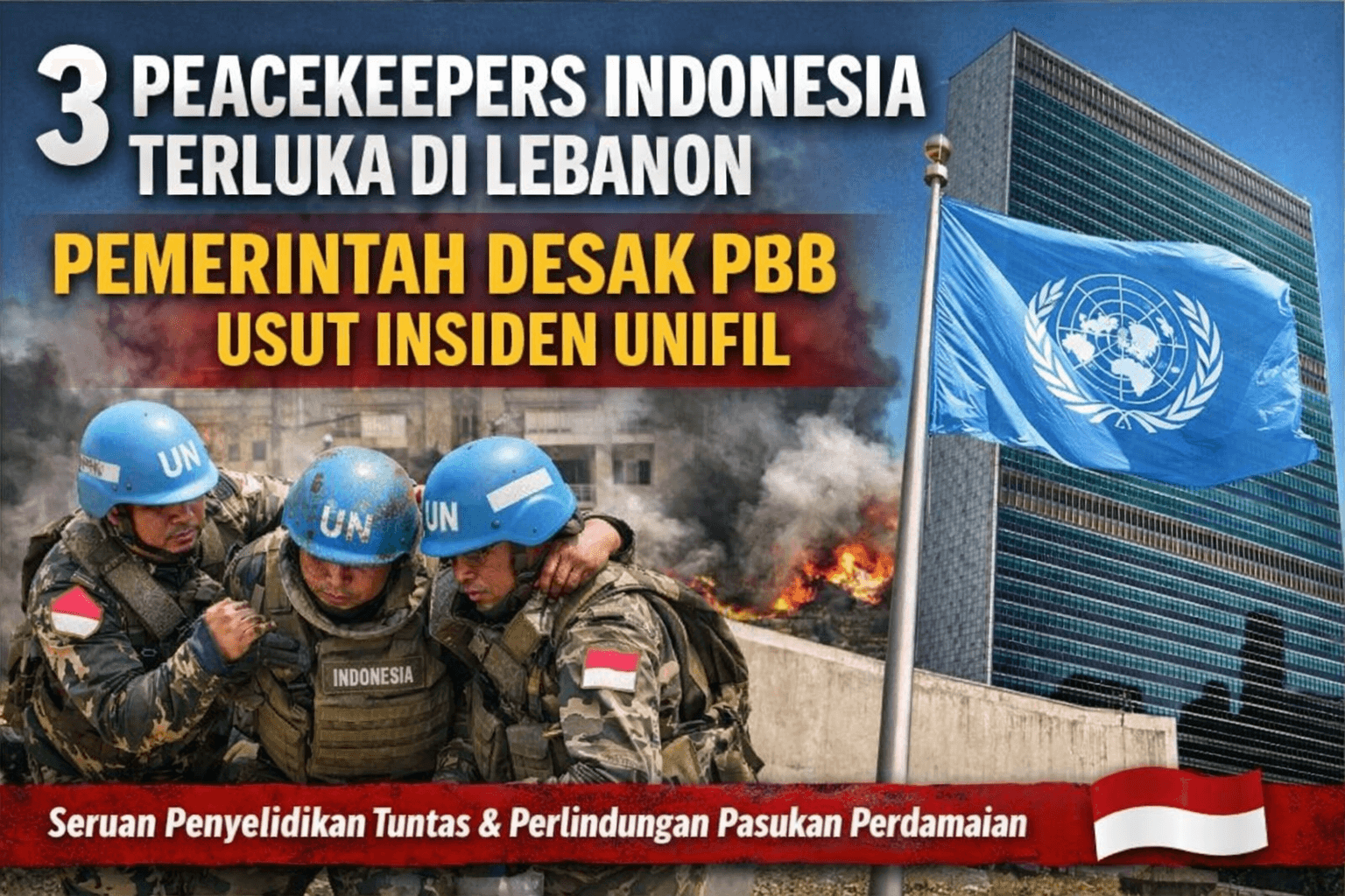 Indonesia mendesak Dewan Keamanan Perserikatan Bangsa-Bangsa (PBB) untuk segera mengusut tuntas seluruh insiden yang menimpa pasukan UNIFIL. Selain itu, pemerintah juga mendorong digelarnya pertemuan negara-negara kontributor pasukan guna melakukan evaluasi menyeluruh serta memperkuat sistem perlindungan bagi personel di lapangan.