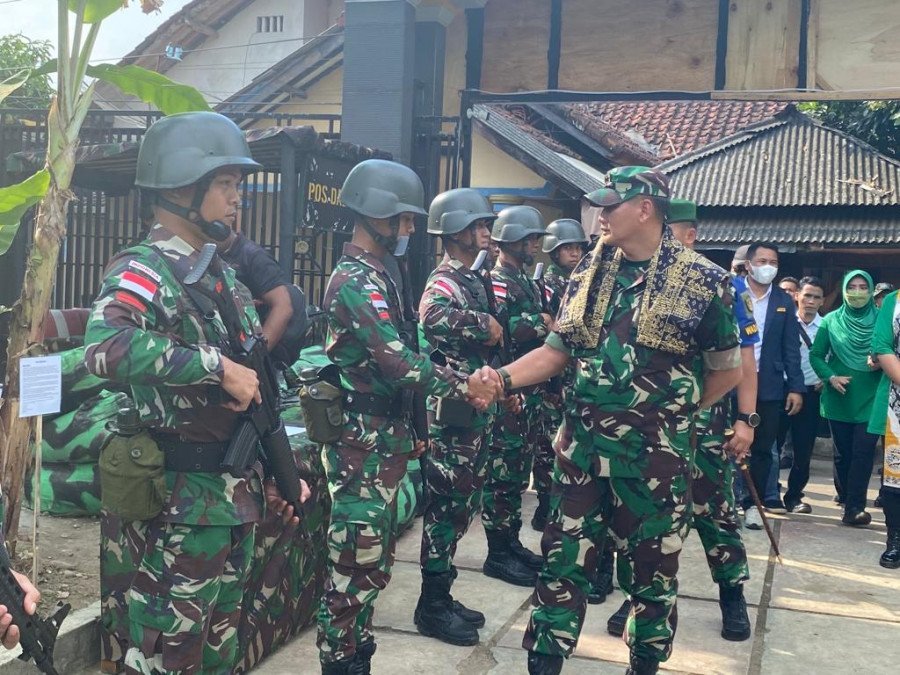 DJABARPOS.COM, Sukabumi – Pangdam III/Slw Mayjen TNI Kunto Arief Wibowo S.I.P., didampingi Ketua Persit Kartika Chandra Kirana Daerah III/Siliwangi beserta pejabat utama Kodam, meninjau latihan Pratugas Yonarhanud 3/YBY di Desa Loji Kecamatan Simpenan, Kabupaten Sukabumi, Jawa Barat, Selasa (5/7/2022).