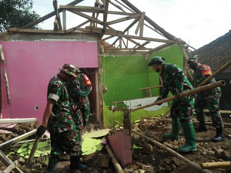 Hal serupa juga yang dilaksanakan oleh Peltu Yogi bersama dengan anggota Koramil 08-12/Campaka juga masyarakat Desa Cieunder melaksanakan pembongkaran atap, rangka atap, dinding rumah juga tiang – tiang penyangga rumah yang berbahan semen dan kusein kayu.