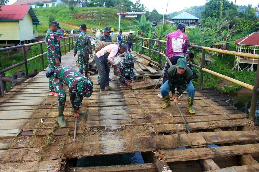 DJABARPOS.COM, Kab. Malinau, – Pamtas RI-Malaysia Yonarmed 5/105 Tarik/Panca Giri di samping melaksanakan tugas pokoknya pengamanan perbatasan, juga membantu renovasi jembatan yang sudah lapuk yang berada di wilayah binaan Pos Long Ampung, tepatnya di Desa Long Ampung, Kecamatan Kayan Selatan, Kabupaten Malinau, Kalimantan Utara.