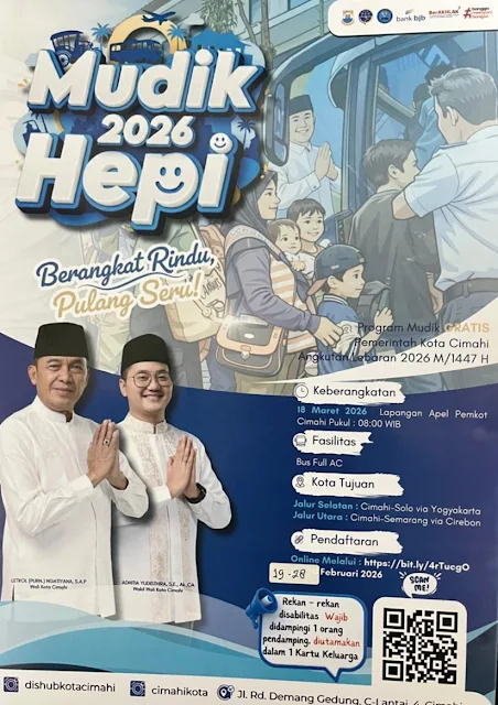 DJABARPOS.COM, Kota Cimahi – Kabar gembira bagi warga Kota Cimahi. Pemerintah Kota Cimahi kembali menghadirkan program mudik gratis bertajuk Mudik Hepi 2026 untuk menyambut Ramadhan 1447 Hijriah. Program ini digelar melalui Dinas Perhubungan (Dishub) sebagai langkah nyata menekan angka kecelakaan lalu lintas sekaligus memberikan fasilitas perjalanan yang aman dan nyaman bagi masyarakat.