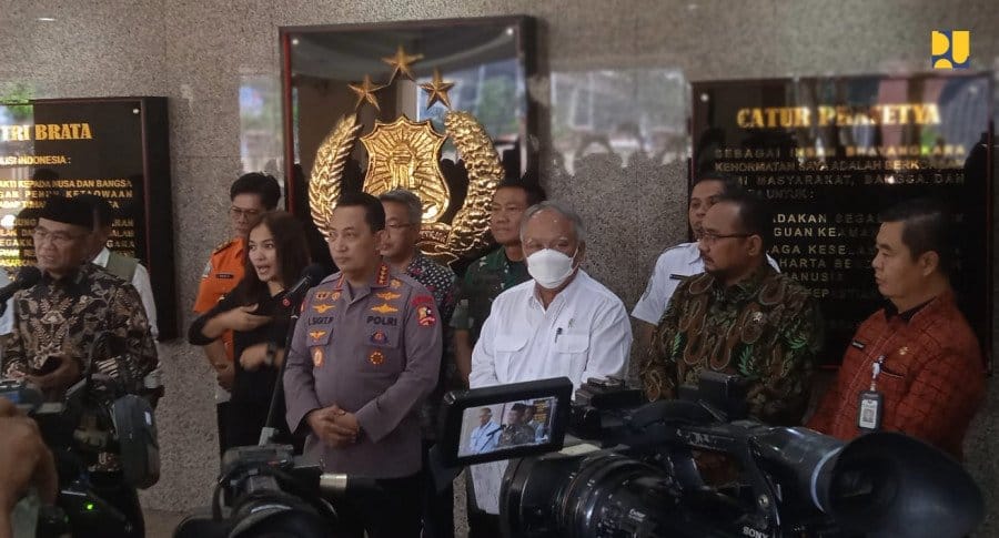 DJABARPOS.COM, Jakarta – Menteri Pekerjaan Umum dan Perumahan Rakyat (PUPR) Basuki Hadimuljono menghadiri Rapat Koordinasi (Rakor) Lintas Sektoral dalam rangka kesiapan pengamanan Natal 2022 dan Tahun Baru 2023 (Nataru) di Mabes Polri, Jumat (16/12/2022). Dalam mendukung kelancaran dan kenyamanan arus lalu lintas, Kementerian PUPR memastikan kesiapan infrastruktur jalan tol yang sudah operasional sepanjang 2.578 km dan jalan nasional (non tol) sepanjang 46.690 km.