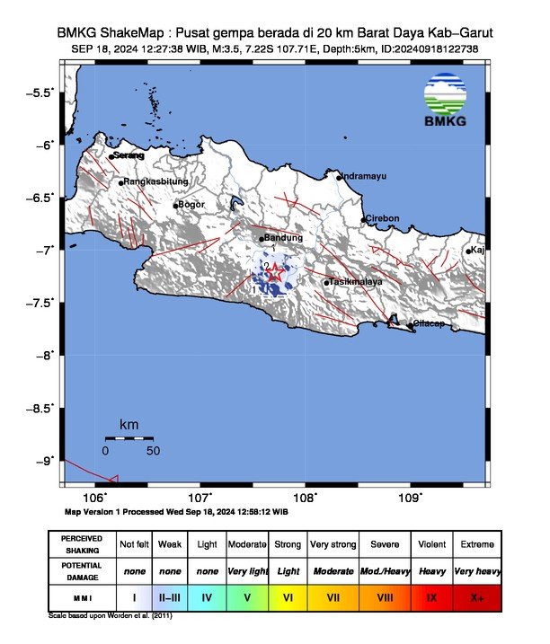 Dilansir dari laman media sosial X mereka, Rabu pagi, BMKG menyebut gempa ini berkekuatan M 5.0. Berlokasi di 7.22 LS, 107.70 BT, 21 KM Barat Daya Garut.