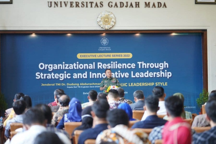 Hal ini disampaikan Kasad saat menjadi narasumber dalam acara Executive Lectures Series kelima yang digelar Magister dan Doktor Kepemimpinan dan Inovasi Kebijakan (MDKIK) Sekolah Pascasarjana UGM dan Pusat Studi Kependudukan dan Kebijakan (PSKK) UGM di Balai Senat Universitas Gadjah Mada, Yogyakarta. Senin, (24/10/2022).