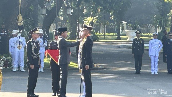 “Bahwa saya akan memenuhi kewajiban perwira dengan sebaik-baiknya terhadap bangsa Indonesia dan Negara Kesatuan Republik Indonesia yang berdasarkan Pancasila dan UUD RI tahun 1945,” ucap Jokowi yang kemudian diikuti para perwira TNI-Polri di Istana Kepresidenan, Jakarta, Selasa (16/7/2024).