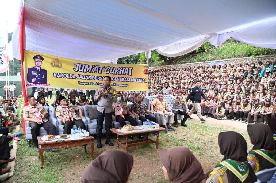 DJABARPOS.COM, Sumedang – Kapolda Jabar Irjen. Pol. Dr. Akhmad Wiyagus, S.IK., M.Si., MM. Didampingi PJU Polda Jabar melaksanakan acara Jum’at Curhat Kapolda Jabar Bersama Generasi Milenial di Bumi Perkemahan Kiara Payung Sumedang, Jum’at (22/12/2023).