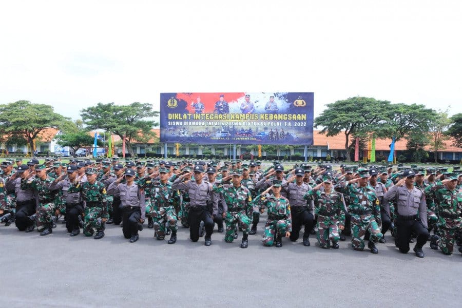 DJABARPOS.COM, Surabaya – Pelaksanaan Diklat Integrasi Kampus Kebangsaan TNI dan Polri TA 2022 selama tujuh hari mulai tanggal 9-16 Desember 2022 dengan peserta Diklat sebanyak 476 orang terdiri dari Maba TNI 356 orang, Siswa Polri 100 orang Maba Kowal 20 orang resmi dinyatakan selesai.