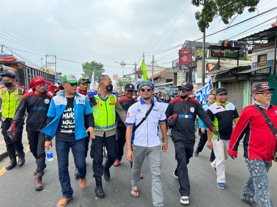 Kapolres Cimahi kawal dan amankan Buruh Long March menuju ke DPRD Kab. Bandung Barat