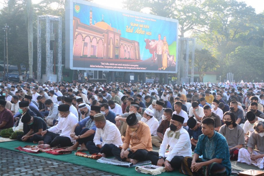 DJABARPOS.COM, Bandung, – Pangdam III/Siliwangi Mayjen TNI Kunto Arief Wibow bersama Ketua Persit Kartika Chandra Kirana Ny. Mia Kunto Arief Wibowo serta ratusan prajurit TNI dan PNS Kodam III/Siliwangi, dan masyarakat sekitar melaksanakan Salat Idul Adha 1443 H di Lapangan Upacara Makodam III/Siliwangi, Jalan Aceh, Kota Bandung, Minggu (10/7/2022).