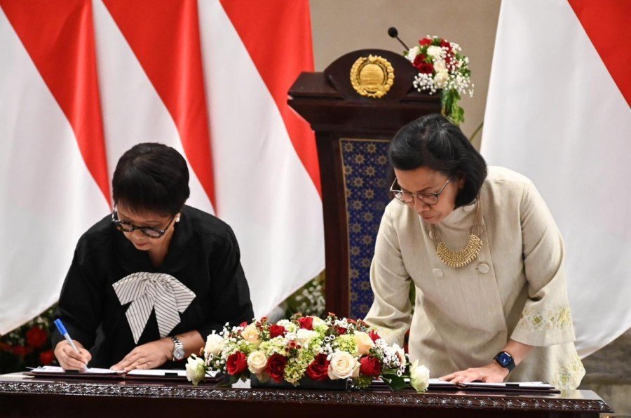 DJABARPOS.COM, Jakarta – Kementerian Luar Negeri dan Kementerian Keuangan berkolaborasi untuk memperkuat diplomasi ekonomi melalui pembentukan Nota Kesepahaman (MoU) Keuangan antara kedua kementerian. Penandatanganan MoU dilakukan oleh Menlu RI Retno Marsudi dan Menkeu RI Sri Mulyani Indrawati di Kantor Kemlu, Jakarta, Senin (14/8).
