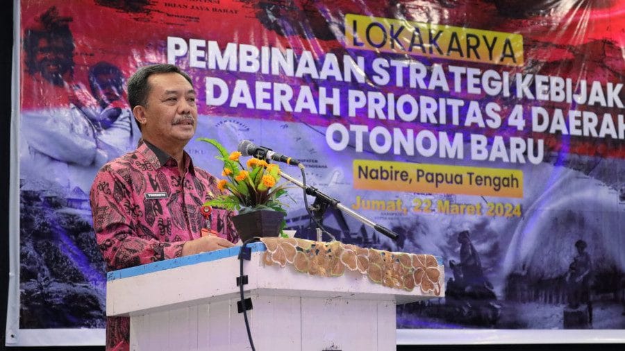 “Kami berharap dari Bapperida (Badan Perencanaan Pembangunan Riset dan Inovasi Daerah) Provinsi Papua Tengah sudah in line untuk menyusun strategi kebijakan yang berkaitan dengan rencana umum ini (isu strategis),” terang Yusharto saat memberi sambutan dalam kegiatan Lokakarya Penguatan Strategi Kebijakan Dalam Negeri Berbasis Karakteristik dan Kearifan Lokal pada 4 Daerah Otonom Baru (DOB) Papua di Kabupaten Nabire, Jumat (22/3/2024).
