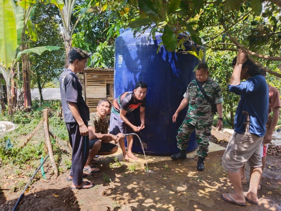 Dandim menyampaikan kegiatan karya bakti pembuatan bak penyaring pompa hidram dilaksanakan Koramil 0603-05/Cipanas bersama dengan Tim Pal Kostrad dan masyarakat untuk membantu masyarakat Desa Lebakgendong yang mengalami kesulitan air bersih.