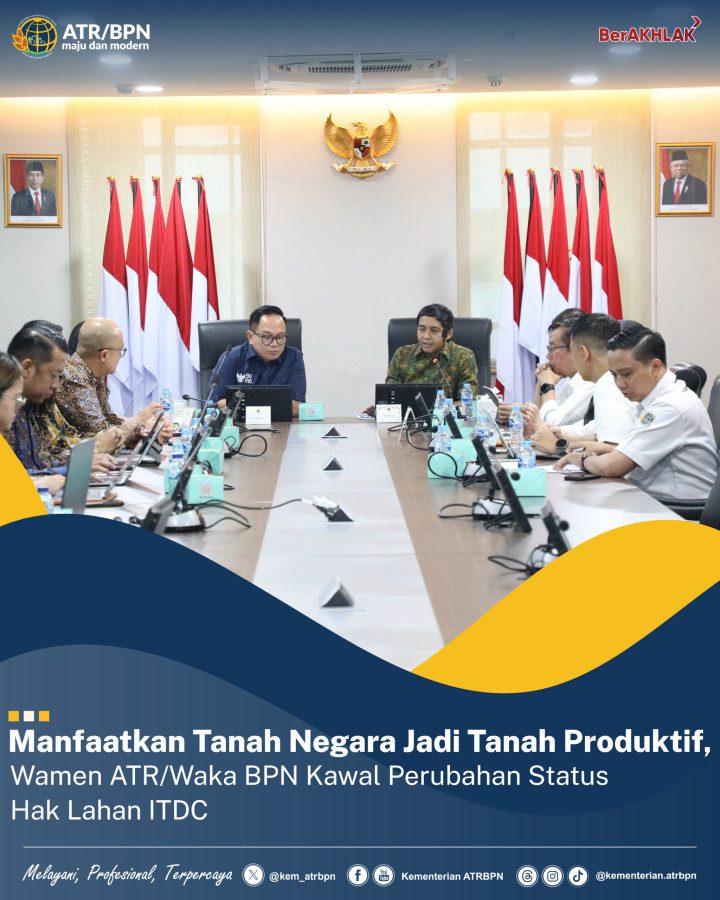 DJABARPOS.COM, Jakarta – Wakil Menteri Agraria dan Tata Ruang/Wakil Kepala Badan Pertanahan Nasional (Wamen ATR/Waka BPN), Raja Juli Antoni menerima audiensi Wamen Kementerian Badan Usaha Milik Negara (BUMN), Kartika Wirjoatmodjo beserta jajaran, di Ruang Rapat 401 Gedung Kementerian ATR/BPN, Jakarta pada Selasa (23/04/2024). Audiensi ini terkait perubahan status hak lahan PT Pengembangan Pariwisata Indonesia atau Indonesia Tourism Development Corporation (ITDC).
