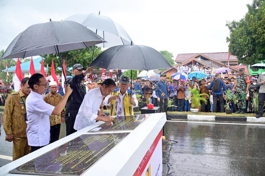 DJABARPOS.COM, Banggai Kepulauan – Presiden Joko Widodo (Jokowi) didampingi Menteri Pekerjaan Umum dan Perumahan Rakyat (PUPR) Basuki Hadimuljono meresmikan perbaikan 15 ruas jalan sepanjang 147 km yang ditangani dengan Inpres Jalan Daerah (IJD) dengan biaya sebesar Rp330 M yang tersebar di 9 Kabupaten di Provinsi Sulawesi Tengah (Sulteng). Peresmian dilakukan terpusat di ruas Jalan Dalam Kota Salakan Kepulauan Banggai pada Selasa (26/3/2024).
