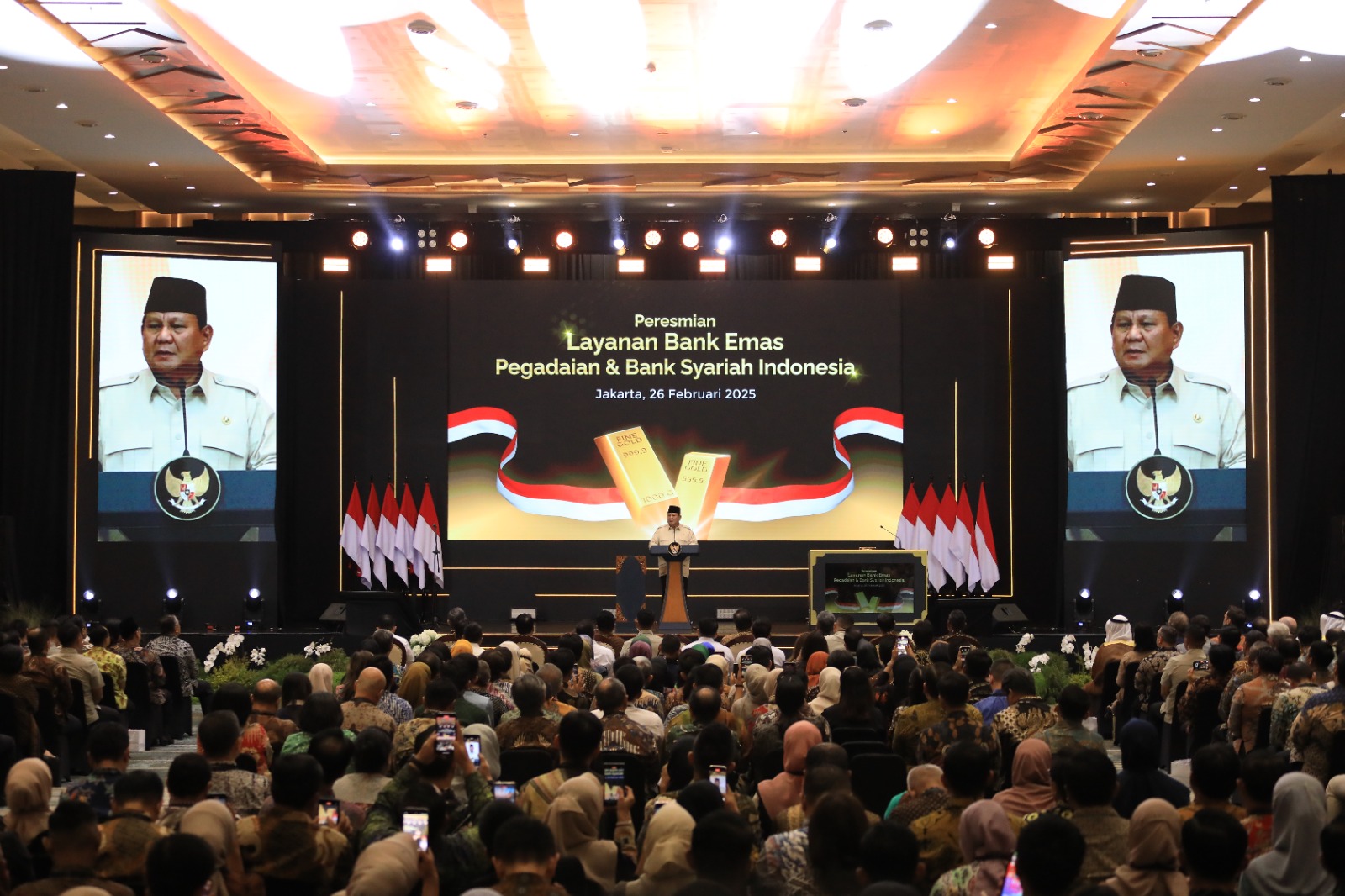 DJABARPOS.COM, Jakarta – Presiden Republik Indonesia, Prabowo Subianto, secara resmi meresmikan layanan Bank Emas Pegadaian dan Bank Syariah Indonesia (BSI), Rabu (26/2/2025), di The Gade Tower, Kantor Pusat Pegadaian, Jakarta.