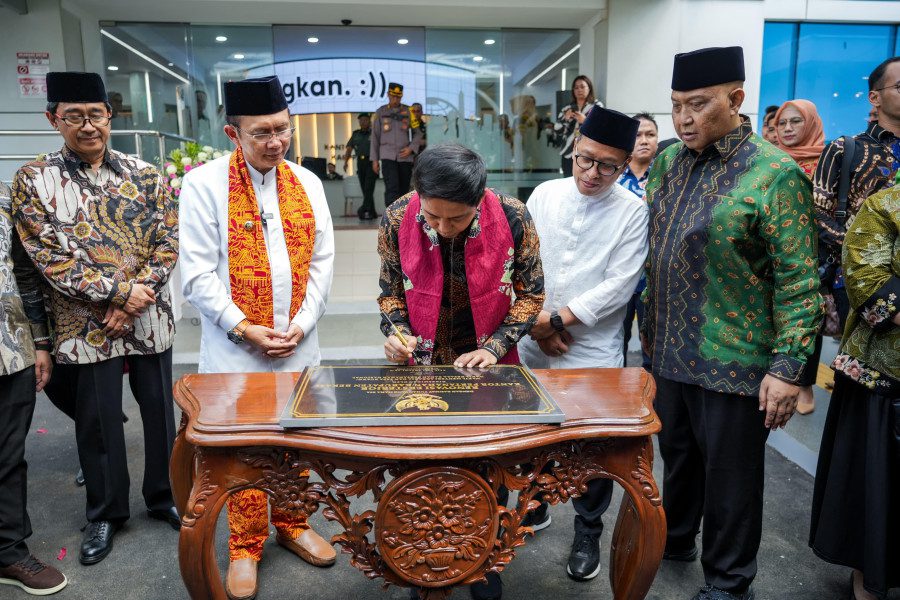 DJABARPOS.COM, Bekasi – Wakil Menteri Agraria dan Tata Ruang/Wakil Kepala Badan Pertanahan Nasional (Wamen ATR/Waka BPN), Raja Juli Antoni meresmikan Renovasi Eksterior Kantor Pertanahan (Kantah) Kabupaten Bekasi pada Jumat (19/04/2024). Renovasi ini merupakan renovasi lanjutan yang telah dilakukan sejak pertengahan 2023. Ruangan yang direnovasi meliputi ruang pelayanan hingga ruang Layanan Tanpa Turun atau yang dikenal sebagai layanan Drive Thru Kantah Kabupaten Bekasi.