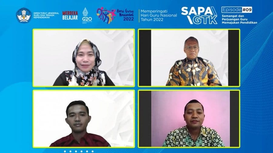 DJABARPOS.COM, Jakarta – Direktorat Jenderal Guru dan Tenaga Kependidikan (Ditjen GTK), Kementerian Pendidikan, Kebudayaan, Riset, dan Teknologi menggelar webinar Sapa GTK ke-9. Acara ini bertujuan untuk membahas isu-isu terkini dan program utama maupun pendukung program dan kali ini mengangkat tema “Semangat dan Perjuangan Guru Memajukan Pendidikan”, yang sejalan dengan peringatan Hari Guru Nasional (HGN) Tahun 2022.