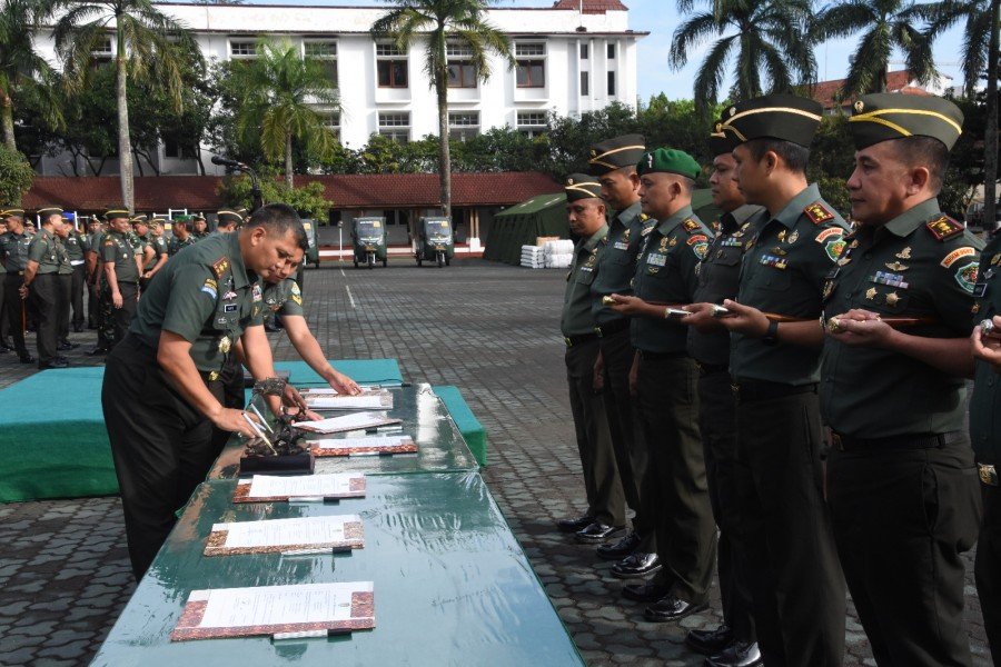Penyerahan sarana prasarana tersebut ditandai dengan penandatanganan berita acara penerimaan materiil oleh para Danrem, Dansektor, Dansat/Kabalak serta Dandim jajaran Kodam III/Slw dihadapan Pangdam III/Slw.