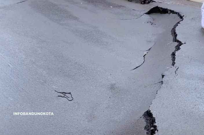 “Hati hati retak, amblas di Cibolerang Kota Bandung,” demikian sebuah pengumuman yang diupload oleh akun instagram @infobandungkota.