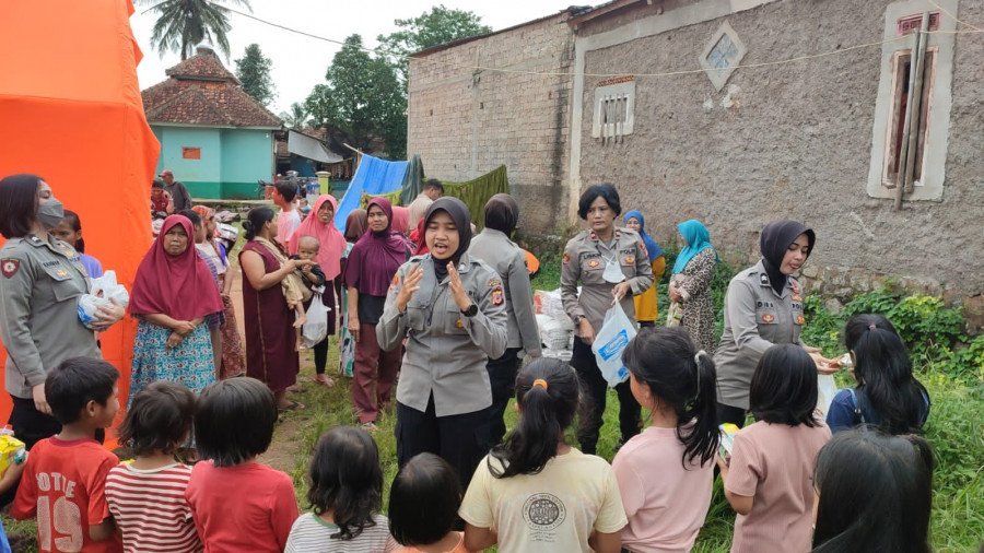 Team Trauma Healing Polres Cimahi Sambangi Korban Gempa Bumi Cianjur