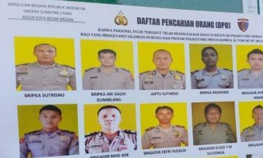 Berikut ini adalah daftar nama 15 anggota Polrestabes Medan yang masuk dalam daftar pencarian orang (DPO):