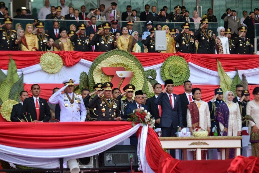 Rangkaian acara ditutup dengan pemotongan tumpeng oleh Presiden Joko Widodo yang didampingi oleh Wapres dan Panglima TNI Laksamana Yudo Margono.
