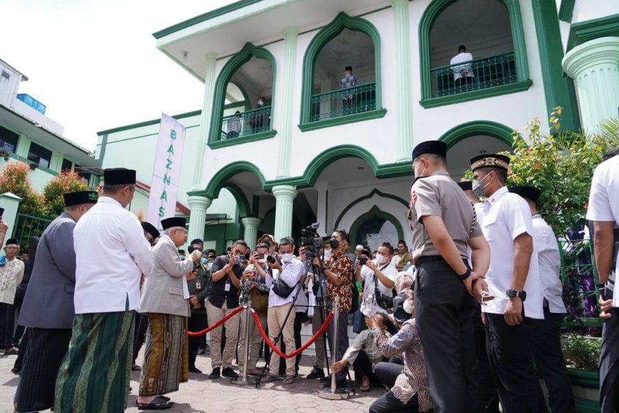 Mendampingi Wapres pada konferensi pers kali ini, Wakil Ketua BAZNAS Mokhamad Mahdum dan Ketua DKM Masjid Raya At-Taqwa Matraman Achmad Yani.