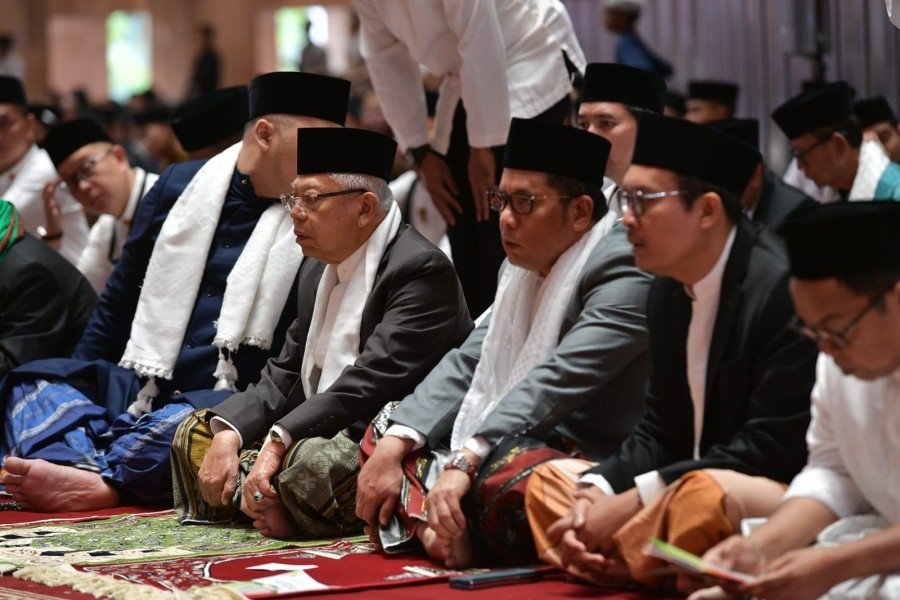 DJABARPOS.COM, Jakarta – Wakil Presiden (Wapres) K. H. Ma’ruf Amin beserta Ibu Hj. Wury Ma’ruf Amin pagi ini menunaikan ibadah Salat Iduladha di Masjid Istiqlal, Jl. Taman Wijaya Kusuma, Pasar Baru, Sawah Besar, Jakarta Pusat, Kamis (29/06/2023).